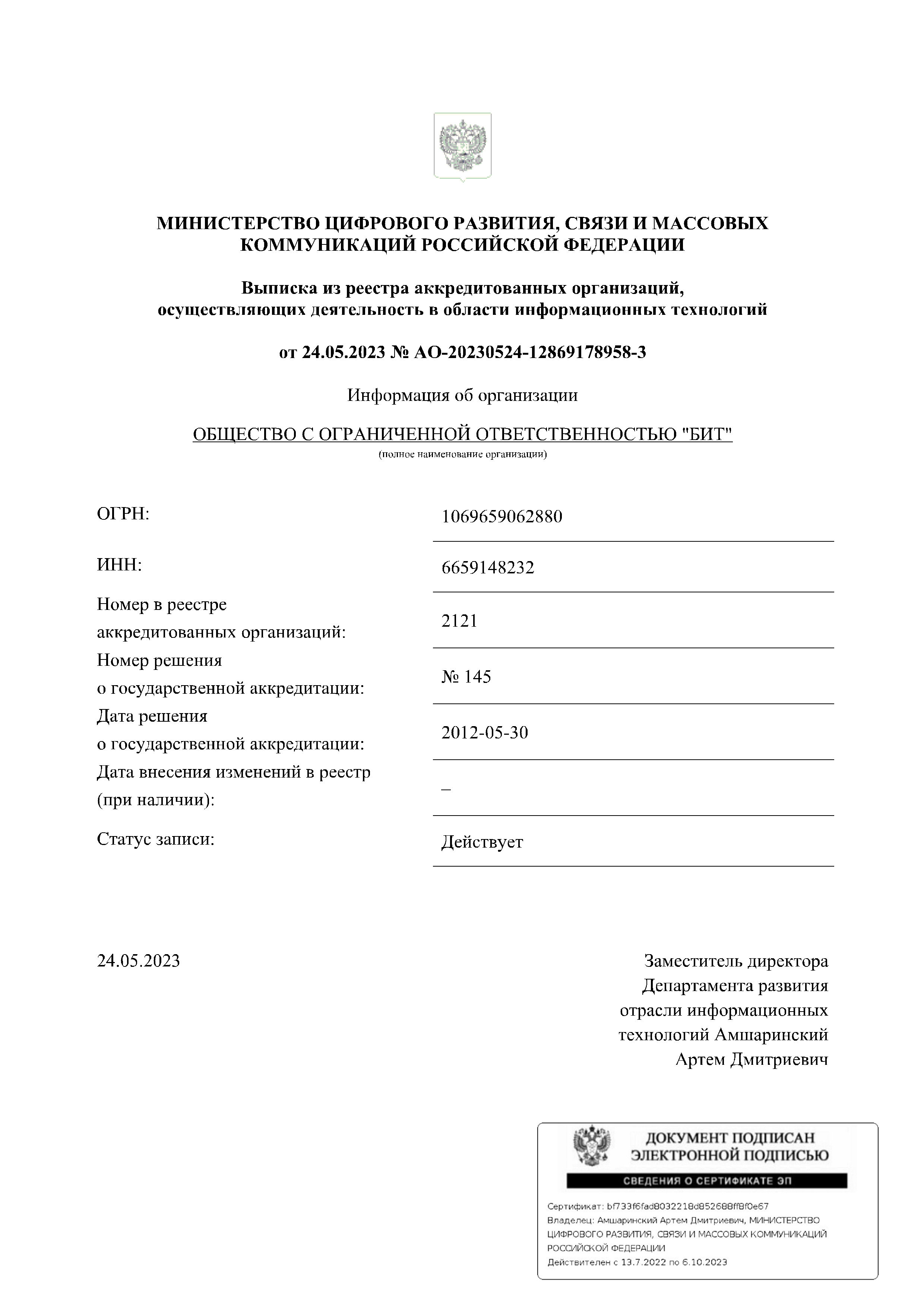 Наша компания аккредитована Министерством цифрового развития