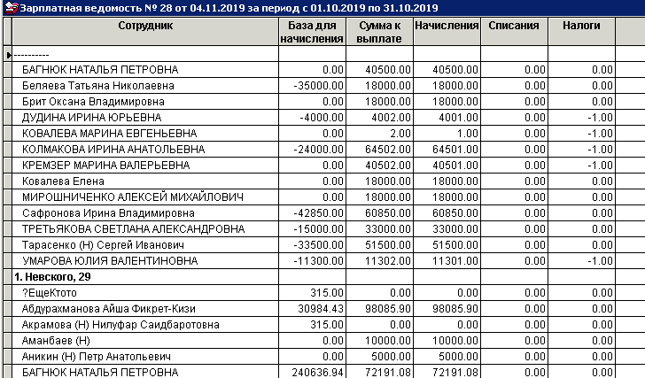 - Печать ведомостей