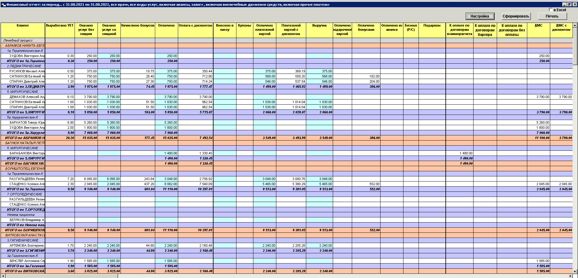 Все движения денежных средств в вашей клинике будут отражены в разных разрезах: