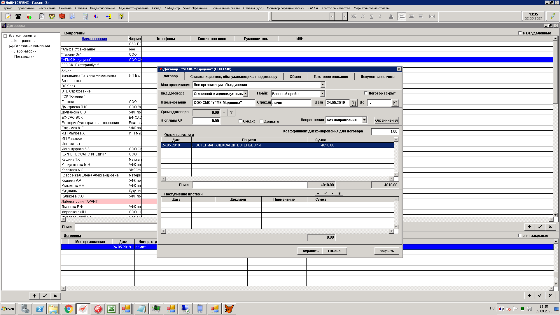 Работа по договорам, ДМС, ОМС, ЕГИСЗ
