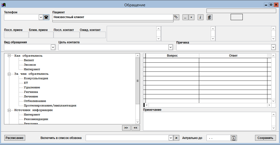 - Обзвон пациентов накануне приема