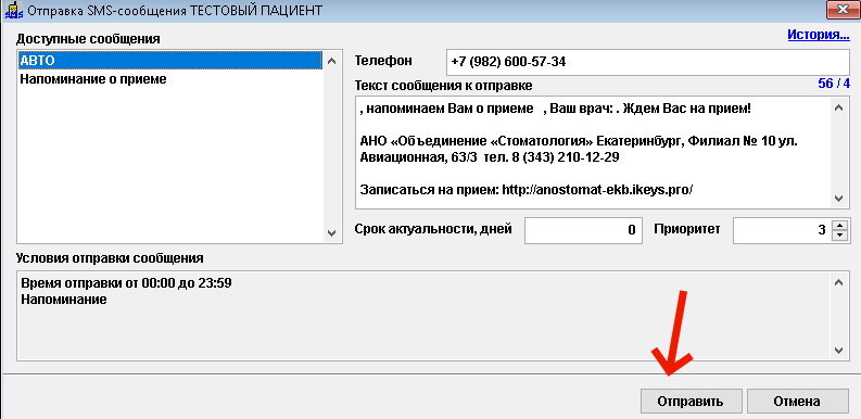 Система Феникс позволяет осуществлять отправки SMS и Whatsapp сообщений пациентам. Как автоматически, так и вручную.