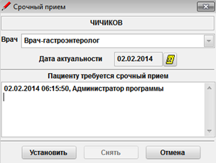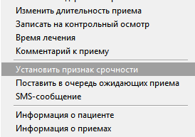 Признак устанавливается в том случае, когда пациенту нужно срочно попасть на прием, но свободных интервалов нет. При выборе этого пункта открывается окно, изображенное ниже.