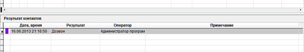 4. В нижней части окна отобразиться результат дозвона контакта.