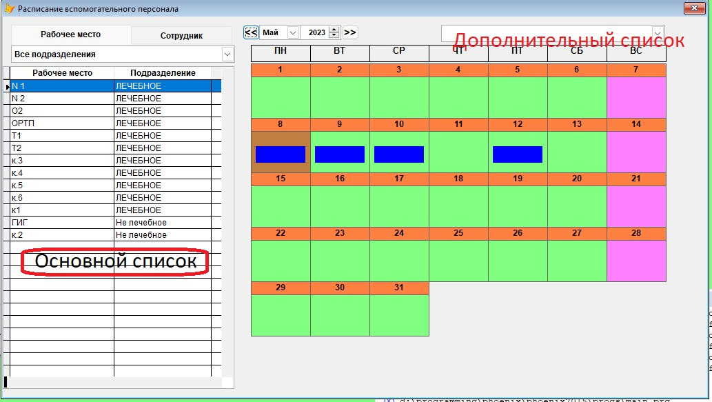 Справа сверху - дополнительный список (либо рабочего места/кабинета, либо сотрудника, в зависимости от выбранной вкладки на основном списке).