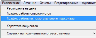 Для формирования расписания заходим в меню "Расписание" - "График работы вспомогательного персонала"