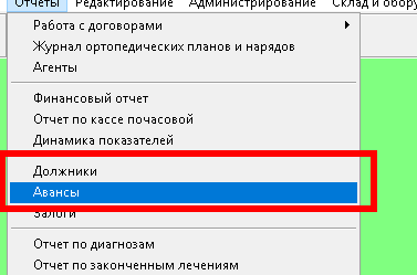 Отчет по авансам формируется автоматически, в нем отображены все авансы, имеющиеся у пациентов на текущий день.